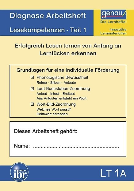 Mit dem Lesetest LT1 und den Diagnose-Arbeitsheften LT 1A / LT 1B kann der aktuelle Ist-Stand einer Schülerin / eines Schülers im Bereich der Lesekompetenzen jederzeit ermittelt werden.