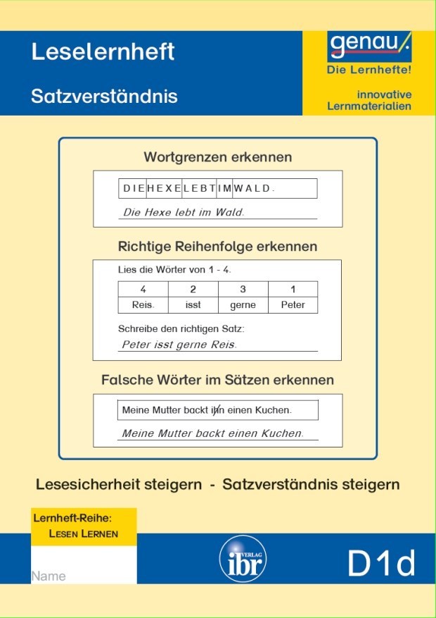Mit dem genau-Leselernheft D1d trainieren die Schülerinnen und Schüler intensiv das Satzverständnis und steigern somit ihre Lesesicherheit und ihre Lesefähigkeit: